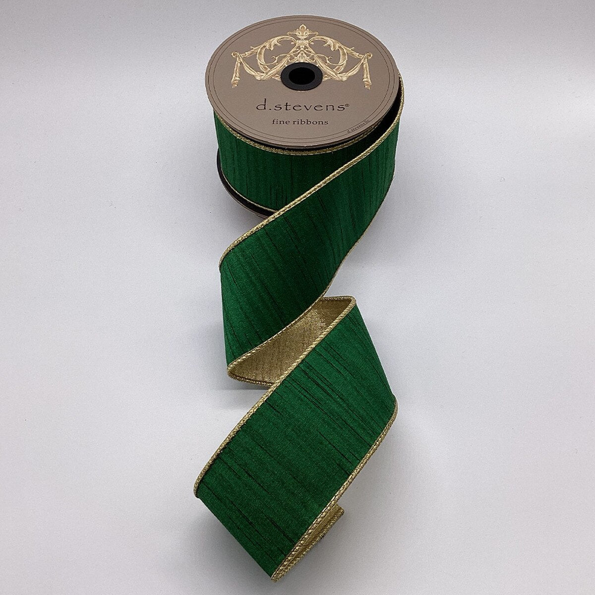2.5" x 10yds Emerald Dupion Metallic Gold Back