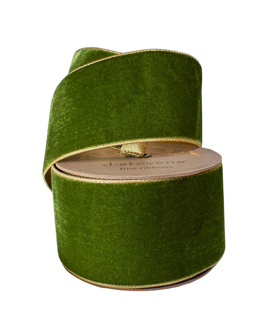 4" x 10yds Forest Green Lush Velvet Metallic Light Gold Back Ribbon